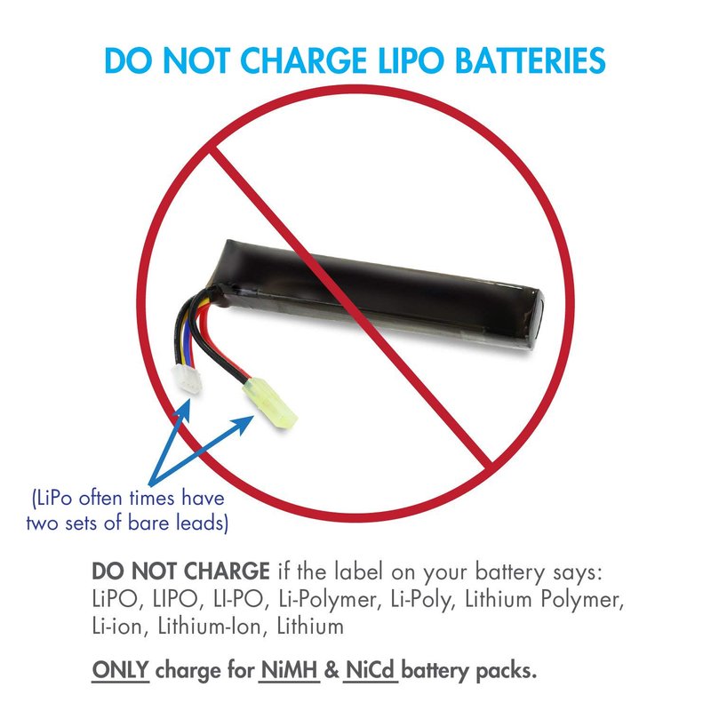 -DO NOT CHARGE: if the label on your battery says: LiPO, LIPO, Li-Po, LI-PO, Li-Polymer, Li-Poly, Lithium Polymer, Li-ion, Lithium-Ion, Lithium