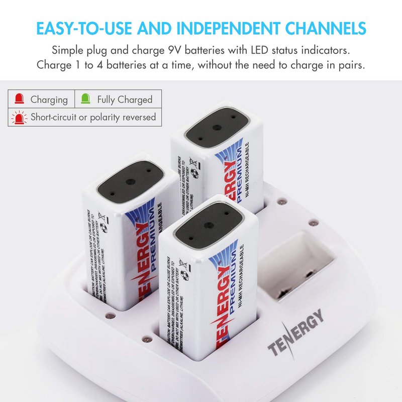 Tenergy TN136 4 Bay 9V Smart Charger with 4 Pieces Tenergy Premium 9V NiMH Rechargeable Batteries