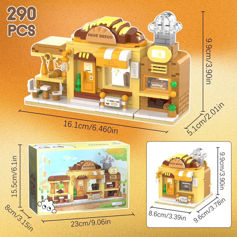 - PERFECT GIFT: City bakery building kit uses a lot of yellow and brown bricks and stickers to build a cartoon block set. Perfect as a birthday gift/Christmas gift for boys and girls aged 6-12.