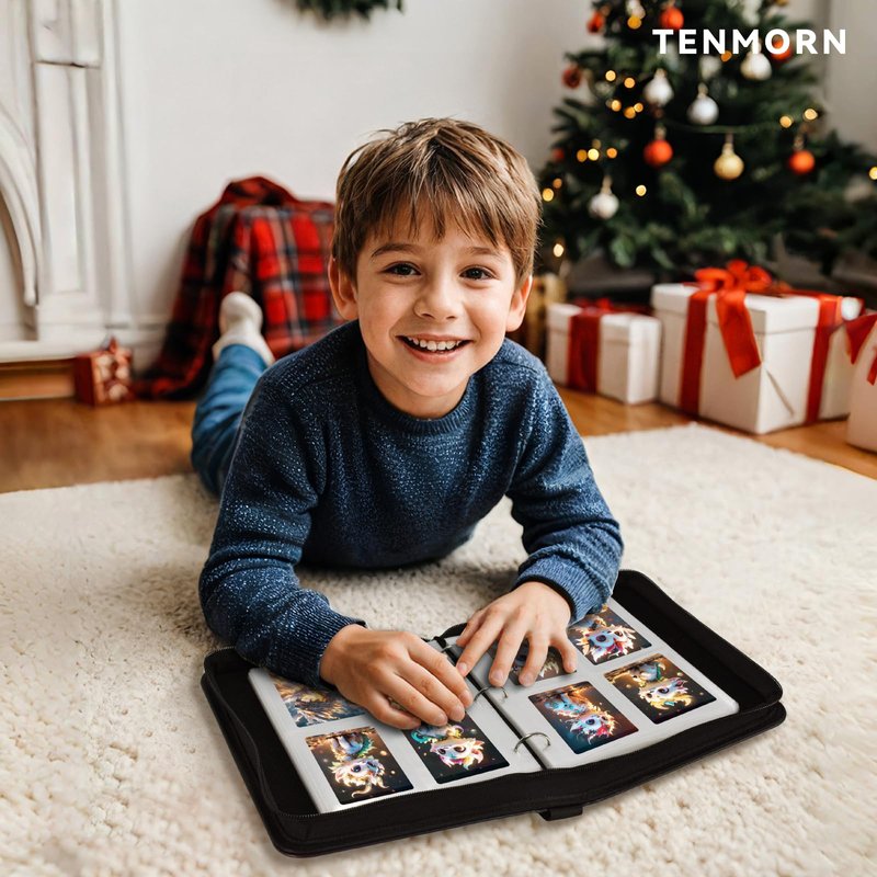 Introducing the Tenmorn Card Binder - the ultimate solution for organizing and protecting your valuable card collection. Whether you're a collector of Fuji Mini Polaroid photos, a fan of the Mtg card game, or a collector of sports cards, this card binder is designed to meet all your needs. Our transparent sleeves are made from high-quality clear polyethylene, ensuring durability, acid-free properties, waterproofing, and superior sturdiness. Say goodbye to card bending, fading, and stains. Your cards will be well-protected and preserved in this card binder. With its compatibility with a wide range of standard-sized cards, including baseball cards, Yu-Gi-Oh card game cards, Skylanders, football cards, Dutch card games, and more, this card binder is truly versatile. No matter what type of cards you collect, this binder has got you covered. The Tenmorn Card Binder features a 4-pocket design, providing ample storage space for up to 400 cards. Need even more storage? Our binder can hold up to 400 cards, making it perfect for avid collectors. The small zipper binder ensures that your cards will stay securely in place, even while on the go. Not only does the Tenmorn Card Binder offer excellent protection and organization, but it also boasts a stylish design. Its sleek and compact design makes it easy to carry and display your cards. Whether you're showcasing your collection or taking it on the road, this card binder is both functional and fashionable. So, why settle for anything less when it comes to protecting your valuable card collection? Choose the Tenmorn Card Binder for its top-notch quality, versatility, and stylish design. Preserve your cards in style and never worry about damage or disorganization again