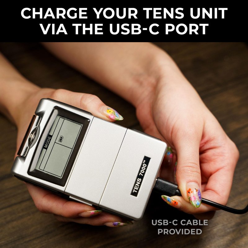 TENS 7000 Rechargeable Tens Unit Muscle Stimulator, Back Pain Relief, 4 Electrodes/Unit Pads, Period Pain Simulator, Muscle Recovery & Growth, Stim Machine, Electrotherapy, TENS Machine