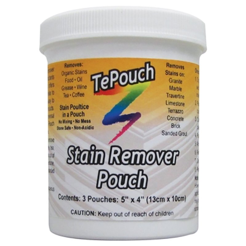 The TePouch Stain Remover Pouch contains stone-safe surfacatants and diatomaceous earth (with the ease of a pouch similar to teabags) for the first easy-to-use poultice stain remover for stone products. This product is very easy for homeowners to use as well as proffessionals! By using a stain process reversal technique, the TePouch Stain Remover Pouch draws the stain out of the stone. Designed to remove stains such as oil, grease, wine, tea, coffee and other organic stains from granite, marble, travertine, limestone, terrazo, concrete, brick and sanded grout!