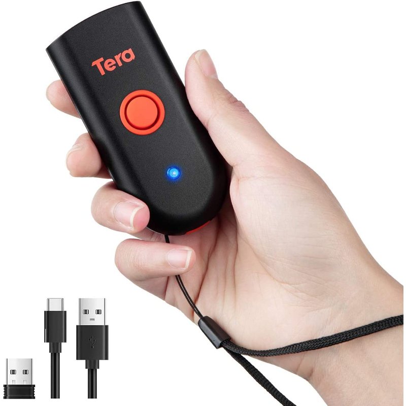 Tera Mini 1D 2D QR Wireless Barcode Scanner, Waterproof Shockproof Pocket Scanner, 3-in-1 BT & USB Wired & 2.4G Bar Code Reader Portable Image Scanner Work with iOS, Windows, Android 1100D