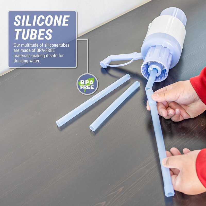 - QUENCH YOUR THIRST - No more unpleasant aftertaste! This manual water pump for your water jug is made from BPA-free food grade plastic, which ensures your water will maintain its natural taste, free from any rubber like flavors.