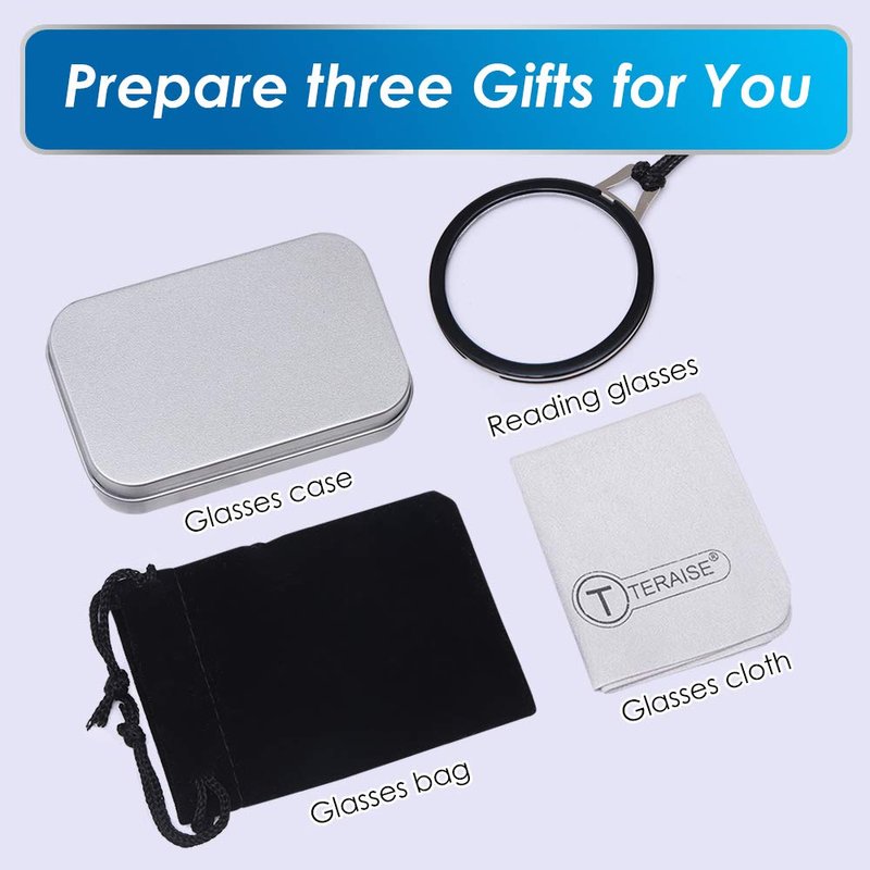 - ☀What You Get - 1*Reading glasses necklace for women; 1*Adjustable glasses rope; 1*Exquisite metal storage box; 1*Glasses bag; 1*Glasses cloth.