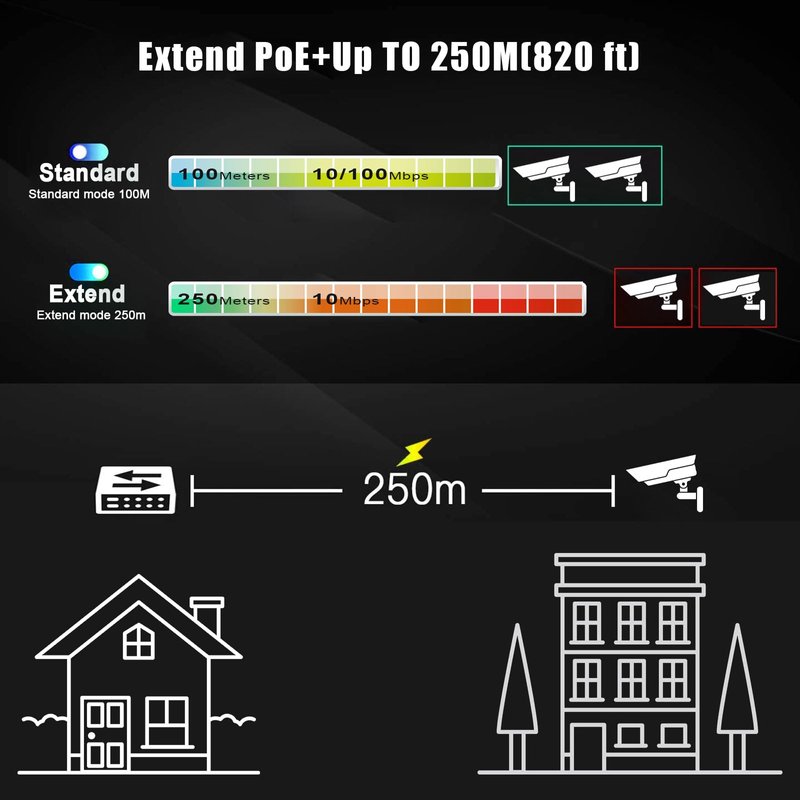 - Powerful PoE Switch: Our PoE Switch effortlessly powers your PDs(802.3af/at) such as Fire Sticks and IP Phones, eliminating the need for additional cables. It provides up to 30W per port with a total power budget of 120W, supporting multiple devices.