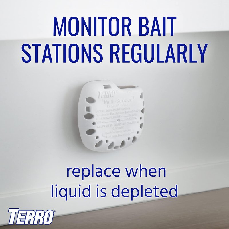 TERRO T334B Indoor Multi-Surface Liquid Ant Bait and Ant Killer - 4 Discreet Ant Bait Stations - Kills Common Household Ants