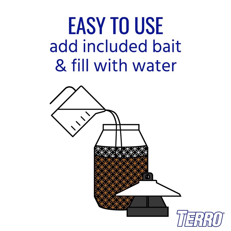 - Easy to Use – Simply pour in the bait, then add water to the fill line and swirl to mix. Add more water as needed to keep the bait moist and flies submerged