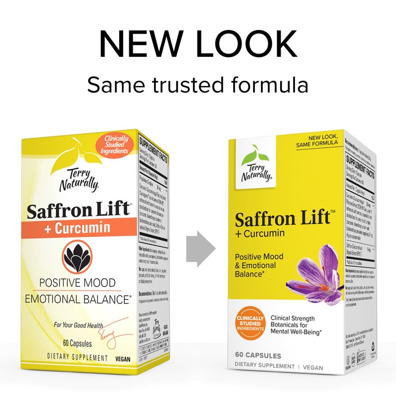 Terry Naturally Saffron Lift + Curcumin - Herbal Supplement with Curcumin - Non-GMO Saffron & Brain Curcumin Capsules - Concentration & Relaxation Support Supplement - 60 Capsules