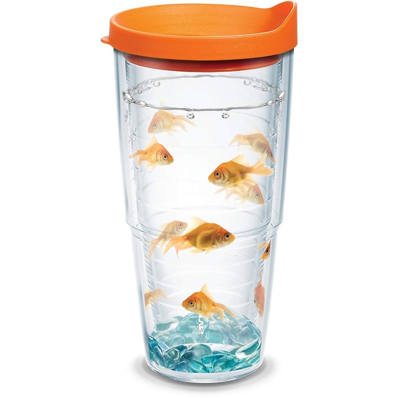 Tervis Goldfish Plastic Tumbler with Wrap and Orange Lid 24oz, Clear, Classic, 1 Count (Pack of 1)