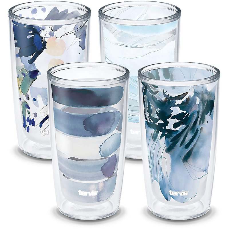 Tervis Kelly Ventura Crystal True Blue Collection Made in USA Double Walled Insulated Tumbler Travel Cup Keeps Drinks Cold & Hot, 16oz 4pk, Assorted