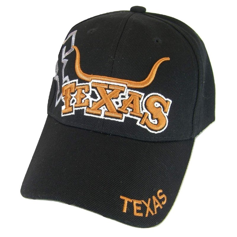 Texas Longhorn & State Flag Adjustable Baseball Cap (Black)