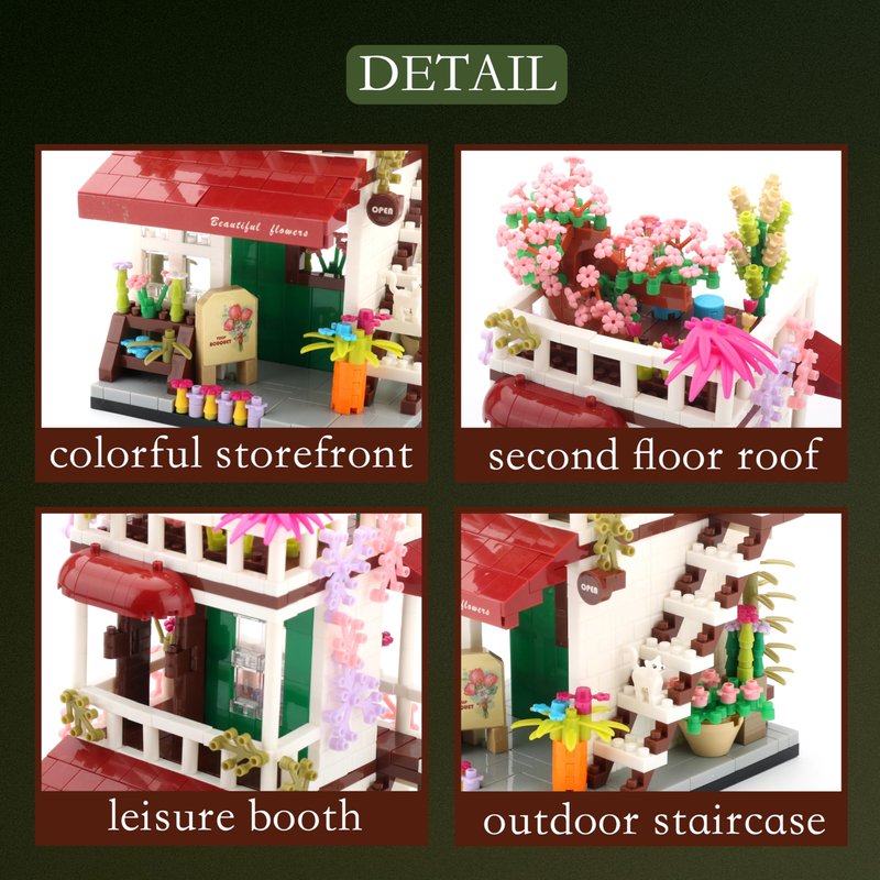 - Beneficial learning experience: The flower store immerses children in the fun of building blocks, not only trains the dexterity of their hands and allows them to display more creativity. And it attracts children's attention away from smartphones and computer games
