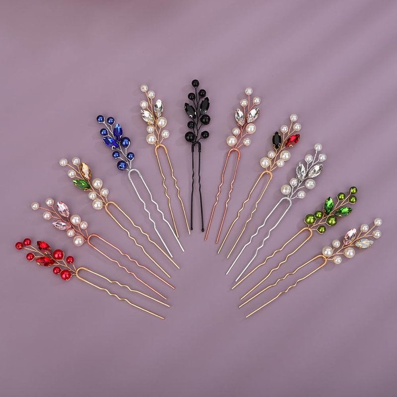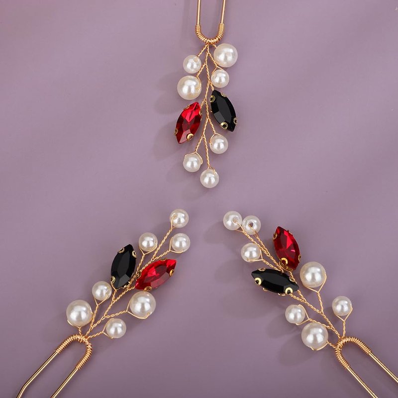 - Simple black and red crystal pearl hair pins set,exquisite and unique design,will add more charm for your outfit.