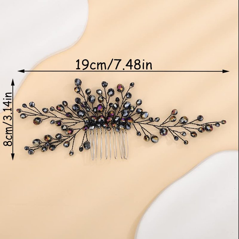 Teyglen Bridal Black Crystal Hair Comb Gothic Black Rhinestone Wedding Hair Side Comb Headband Handmade Hair Pieces Headpieces Hair Jewelry for Women Girl Party Prom