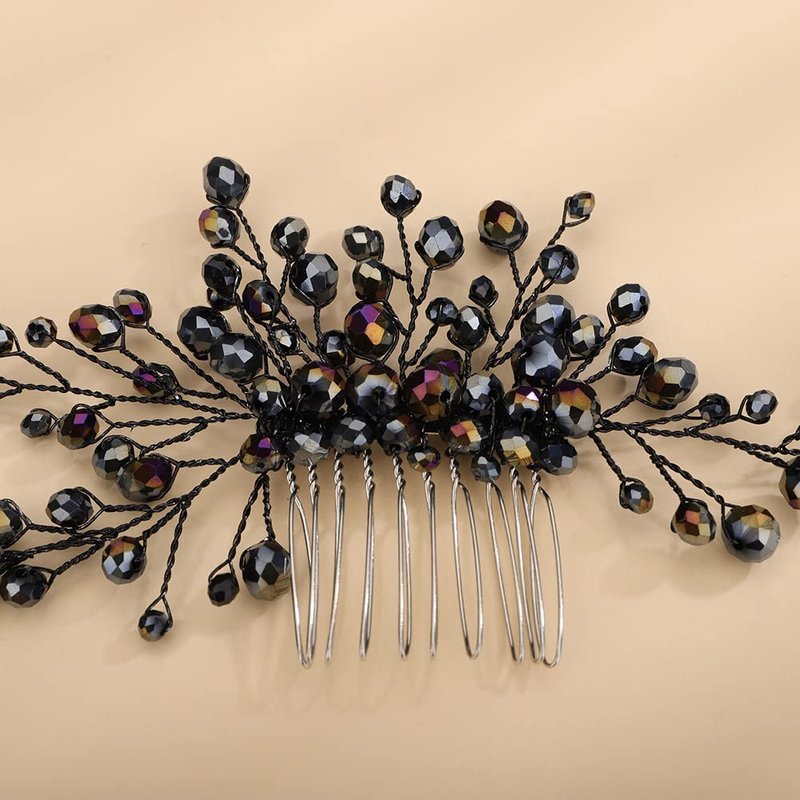 - Dainty Black Crystal Rhinestone Beads Hair Comb.