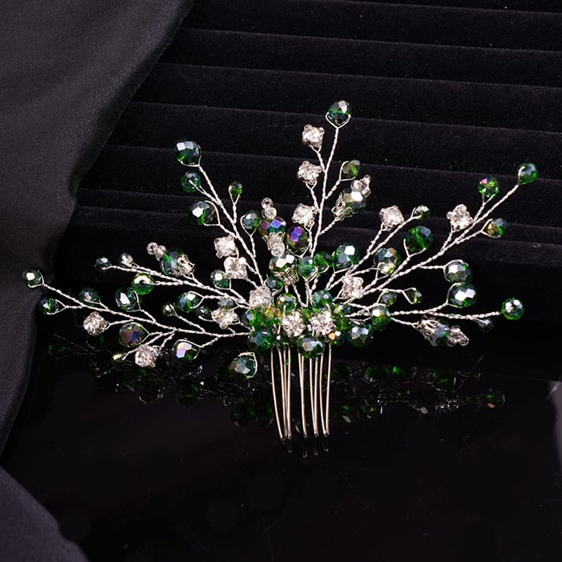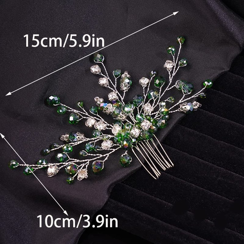 Teyglen Bridal Green Crystal Hair Comb Rhinestone Bride Wedding Hair Comb Sparkly Hair Piece Hair Accessories for Bride Bridal Side Comb Rhinestone Headpiece for Women Girls