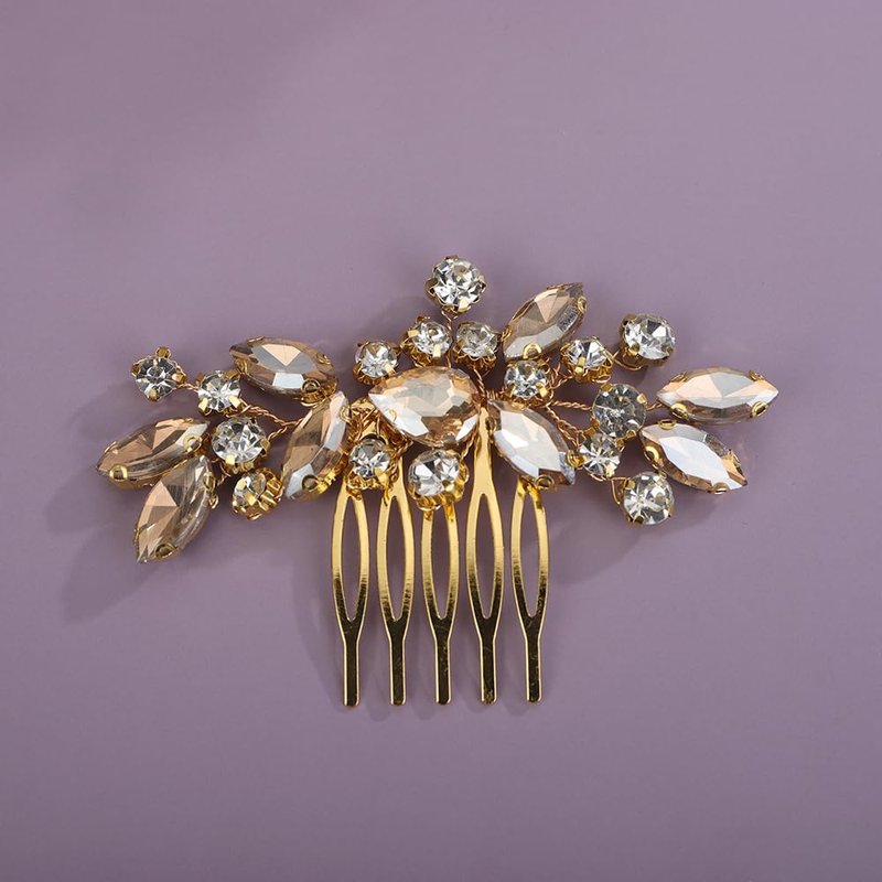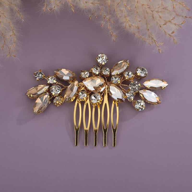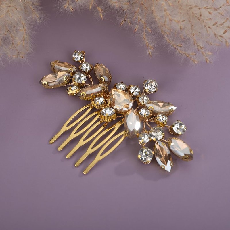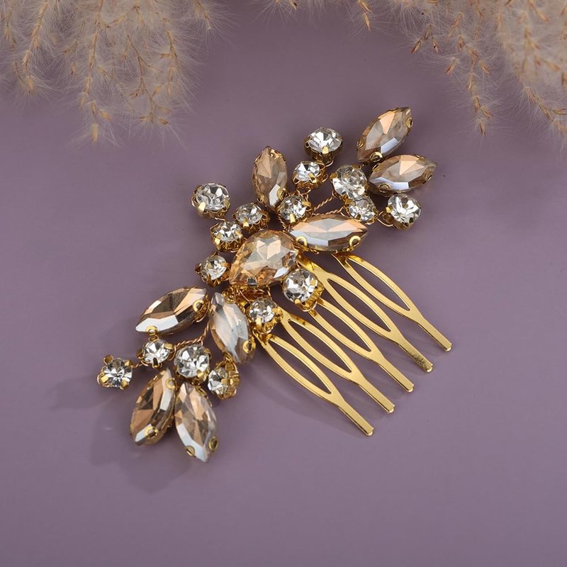 - Sparkly cute champagne crystal rhinestone hair comb for women party prom wedding and evening,exquisite and unique design,will add more charm for your outfit.