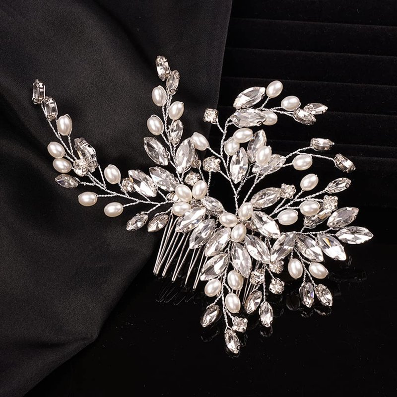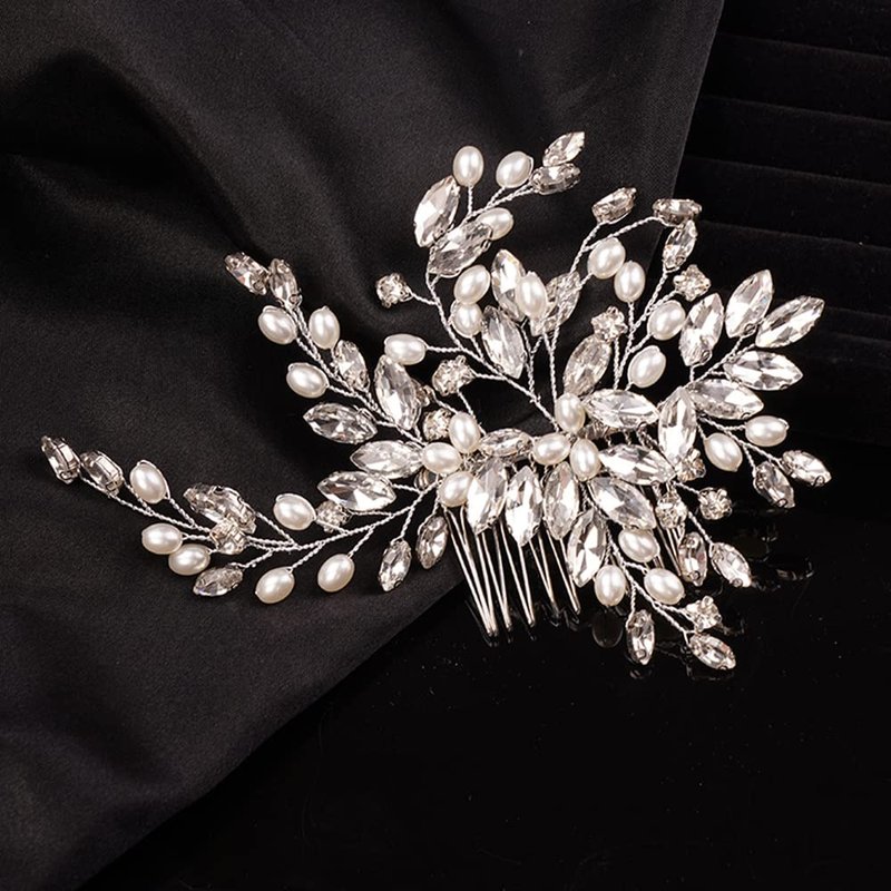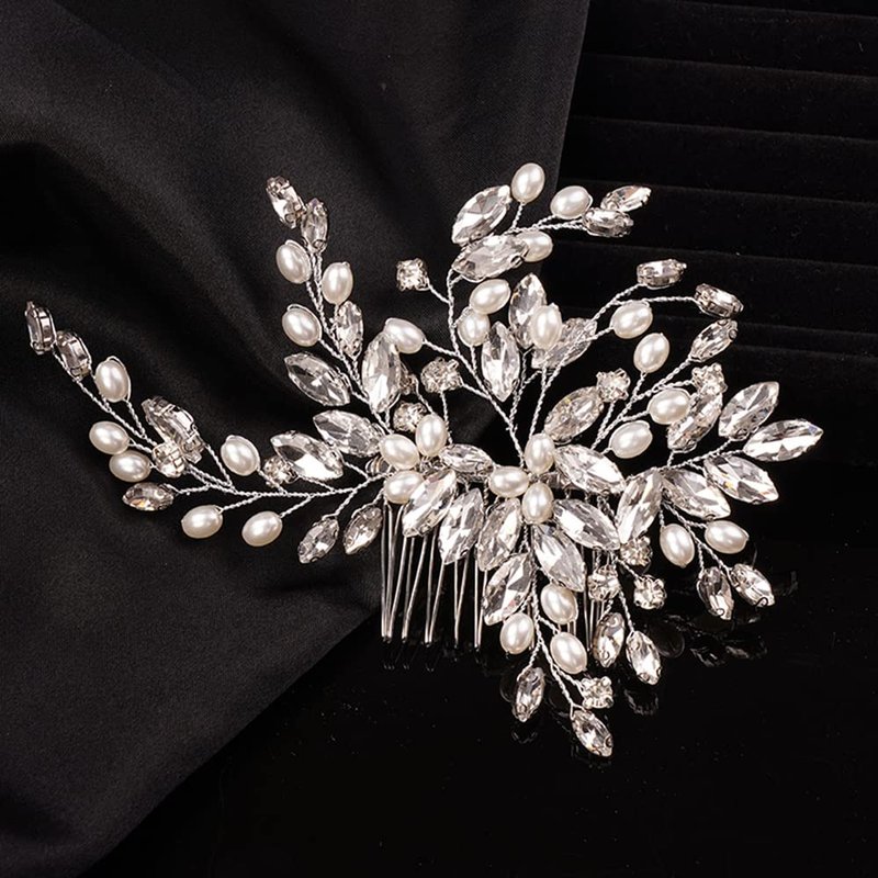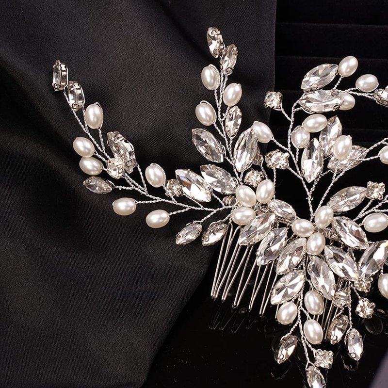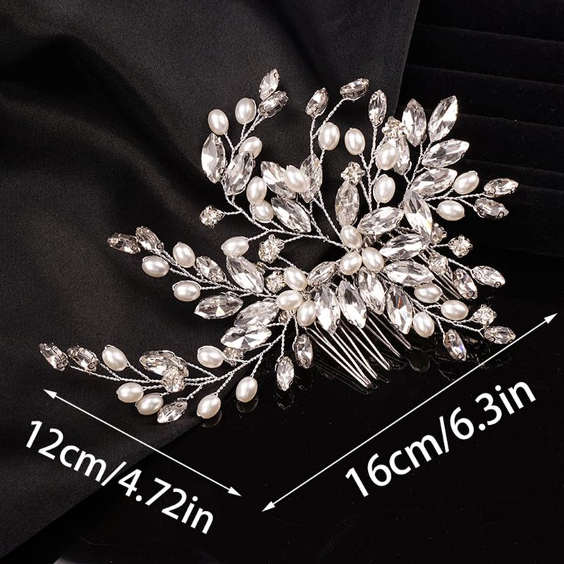 Teyglen Crystal Bridal Hair Comb Silver Rhinestone Headpiece for Wedding Handmade Pearl Crystal Beads Hair Piece Hair Accessories for Women Bride Girls(Silver)