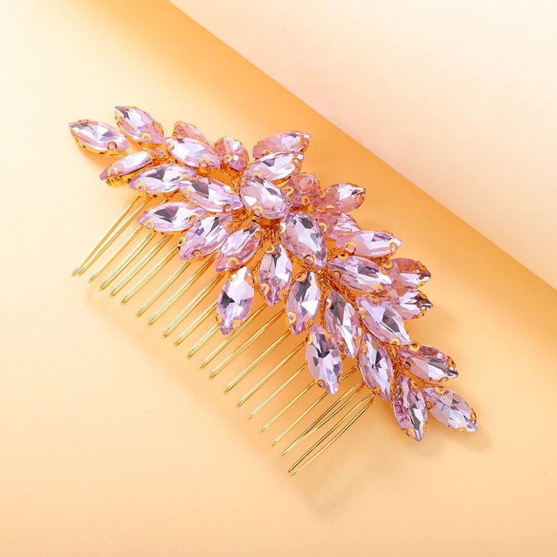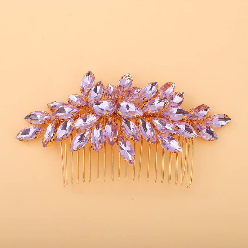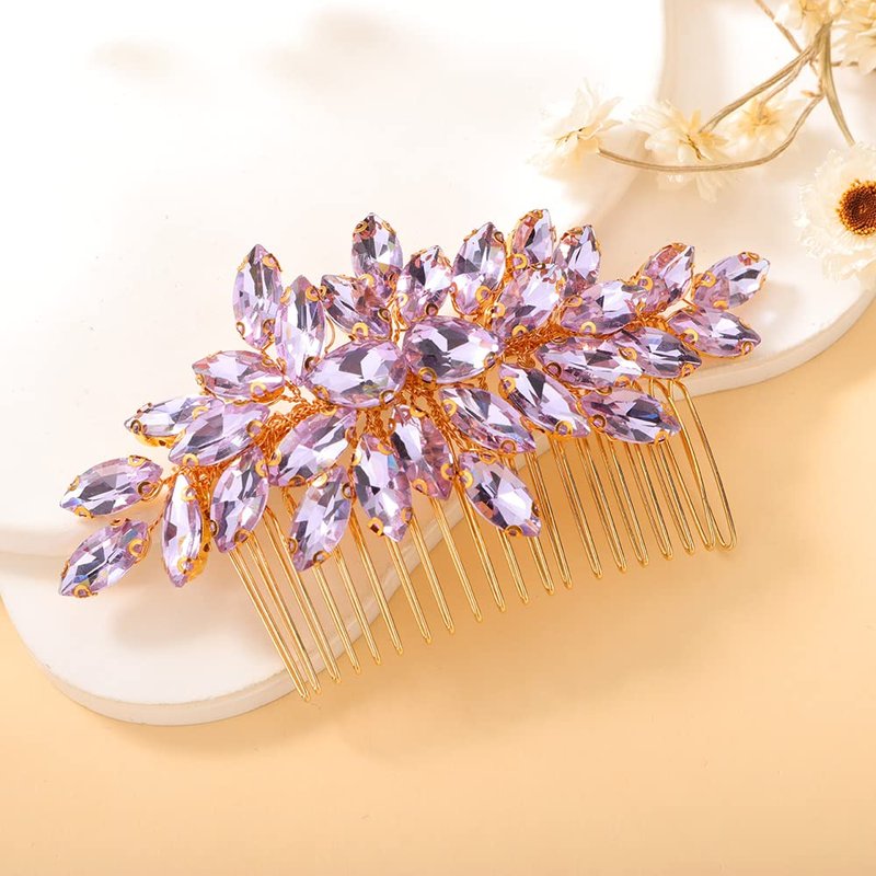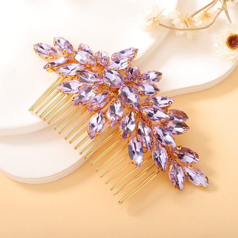 Teyglen Crystal Bride Wedding Hair Comb Full Rhinestone Side Comb Bridal Red Green Black Purple Crystal Hair Pieces Hair Accessories for Bride Women Girl (Purple)