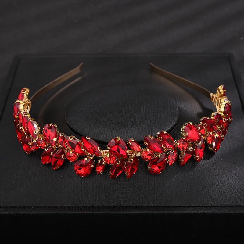 • Handmade Full Red Rhinestone Crystal Headband Tiara.