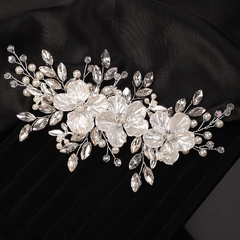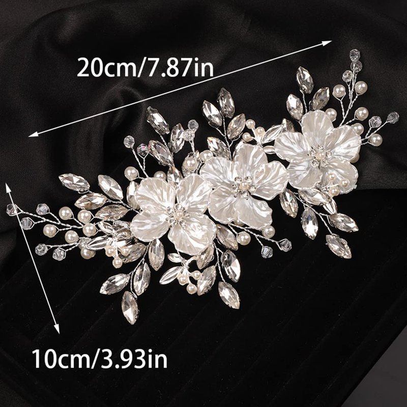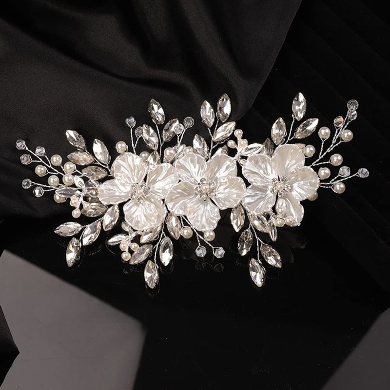 Teyglen Flower Bride Wedding Hair Clips Bridal Rhinestone Pearl Hair Clip Pin Silver Flower Wedding Headpiece Handmade Crystal Hair Piece for Women Girls