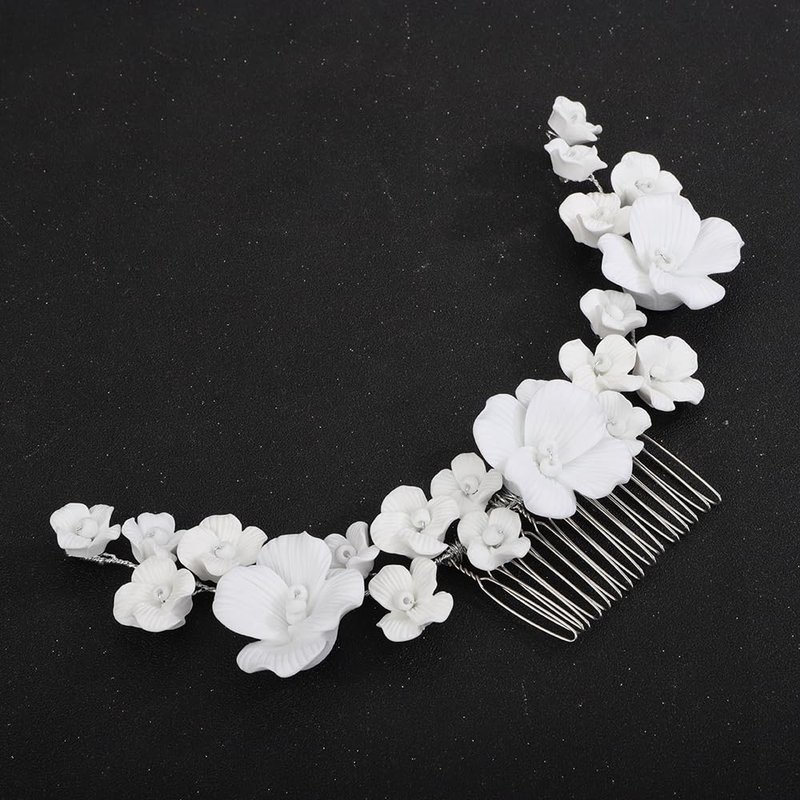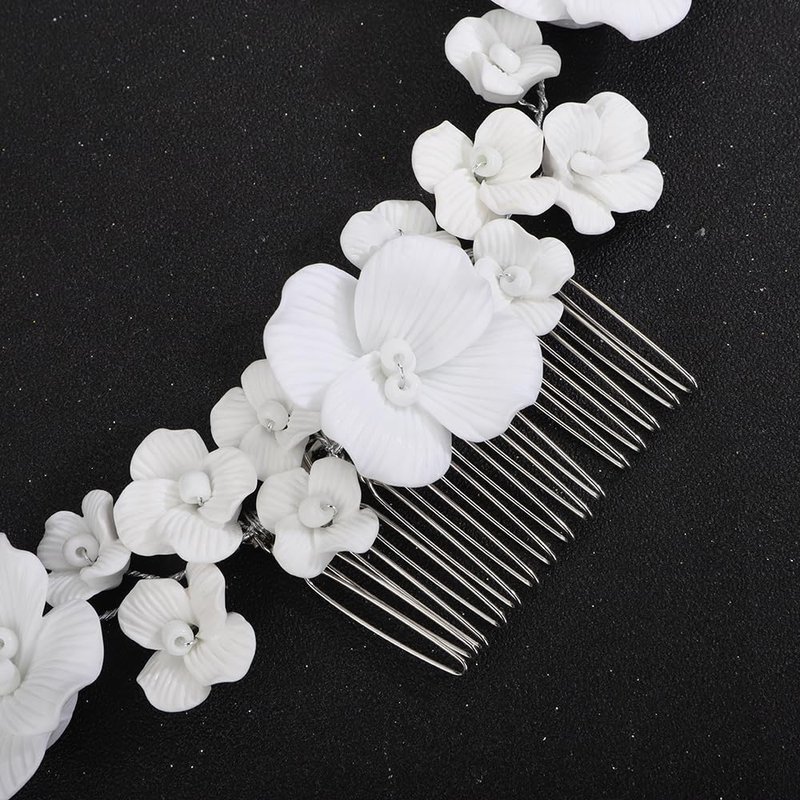 Teyglen Flower Bride Wedding Hair Comb White Flower Hair Comb Headband Decorative Hair Accessories Floral Headpiece for Women