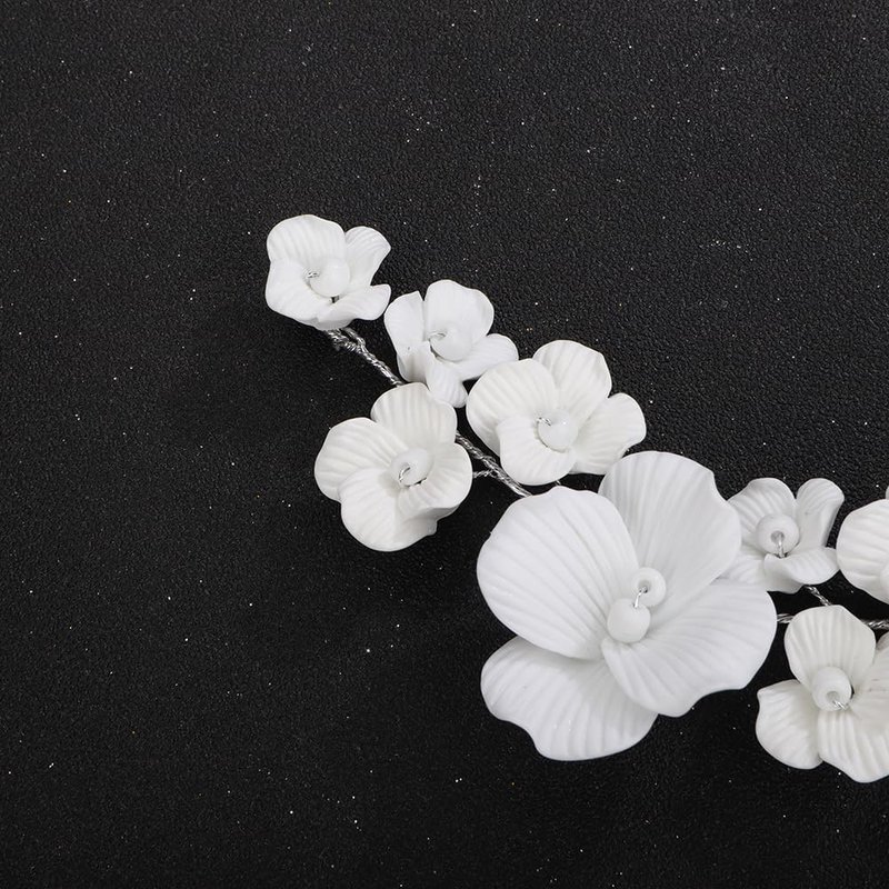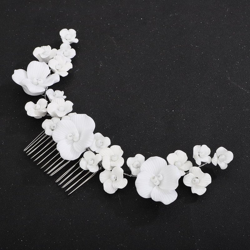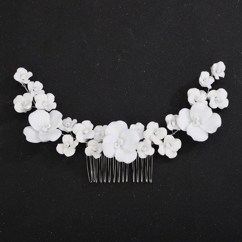 - Floral White Flower Hair Comb Headband .