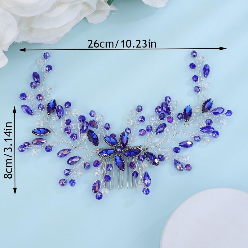 - Dainty Blue Crystal Flower Hair Comb Headband.