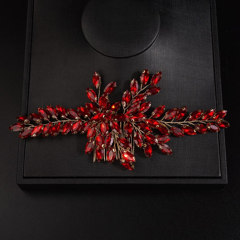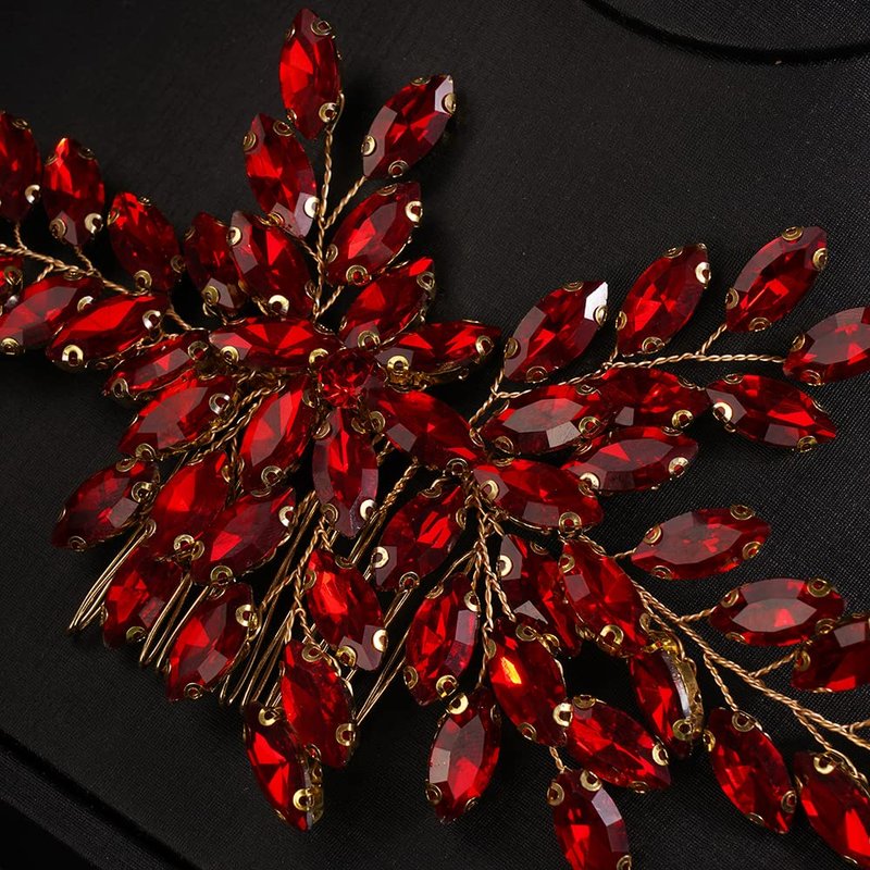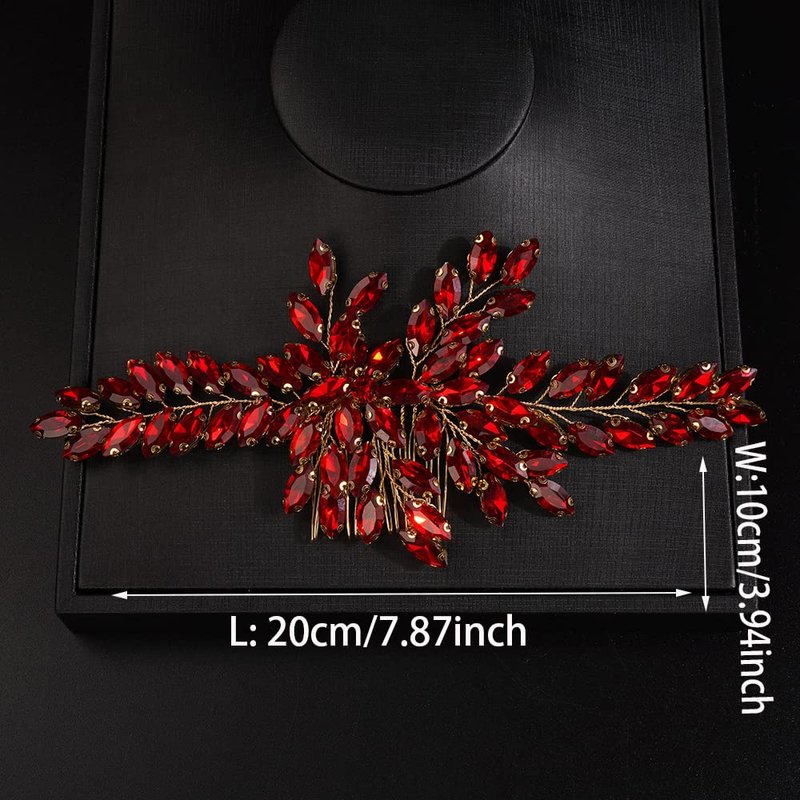 - Sparkly full red crystal rhinestone hair comb for women party prom wedding and evening,exquisite and unique design,will add more charm for your outfit.