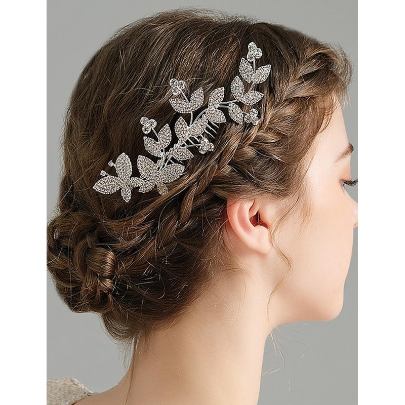 - Dainty butterfly leaf rhinestone crystal hair comb for women party prom wedding and evening,exquisite and unique design,will add more charm for your outfit.
