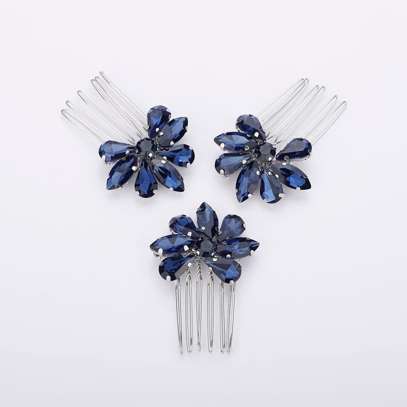 - Women Dark Blue Rhinestones Crystal Hair comb Set