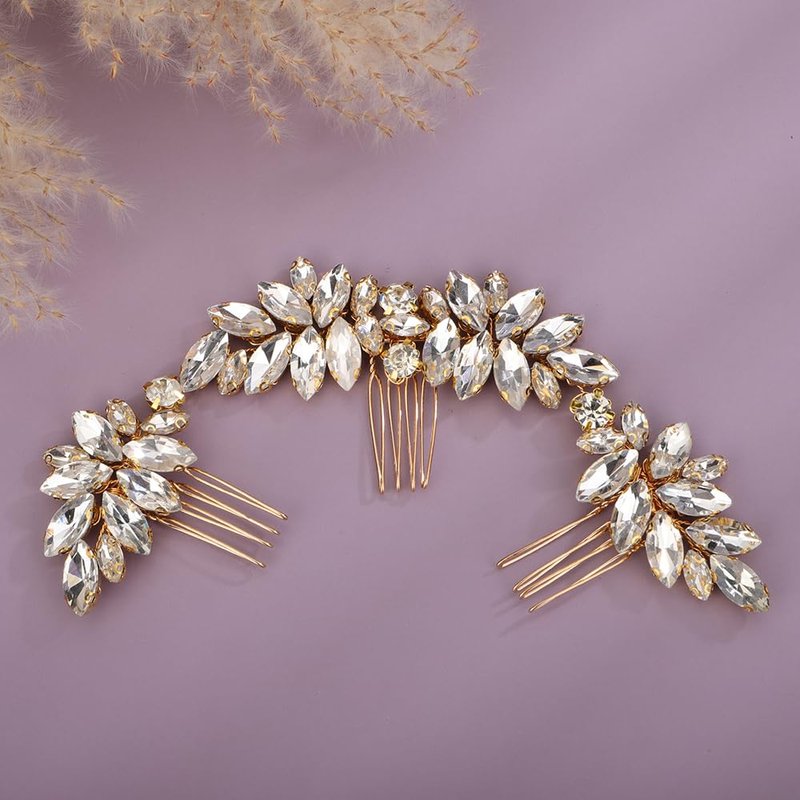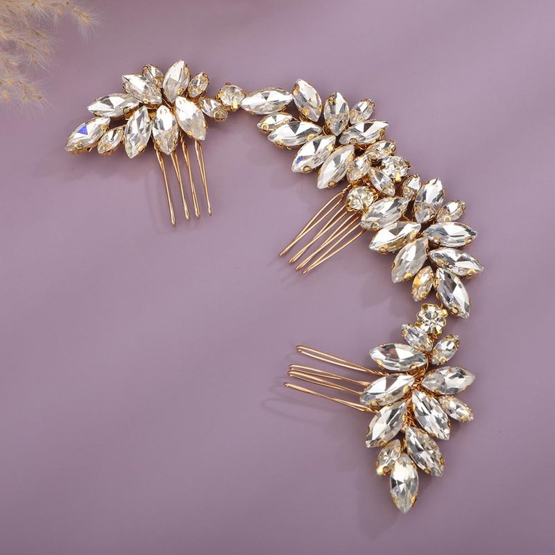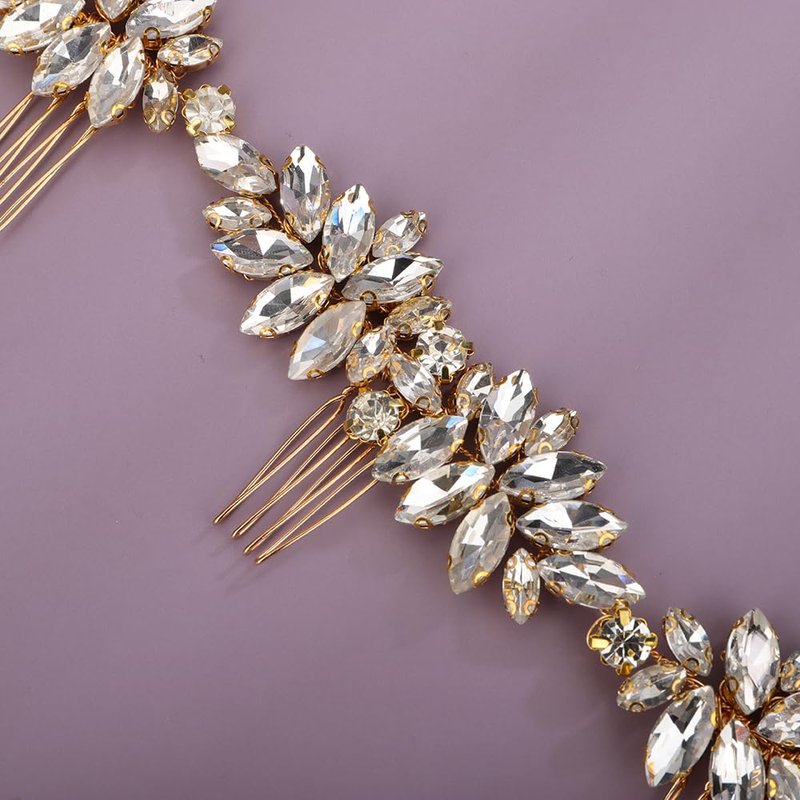 Teyglen Sparkly Rhinestone Wedding Hair Comb Headband Crystal Bridal Hair Side Comb Gold Silver Rhinestone Headpiece Hair Piece Hair Accessory for Women Bride Girls (Gold)