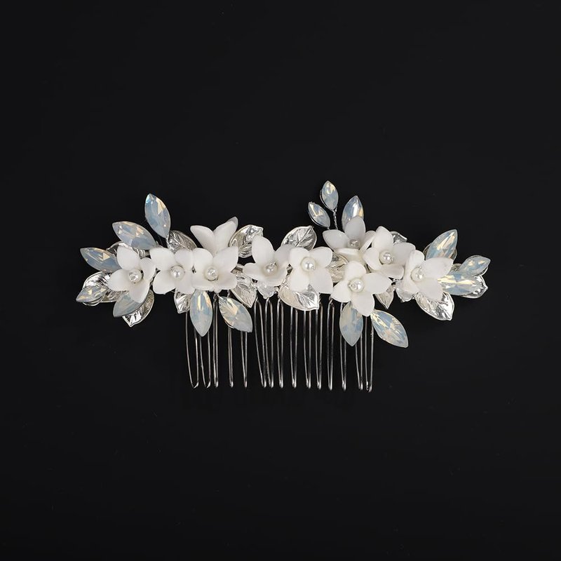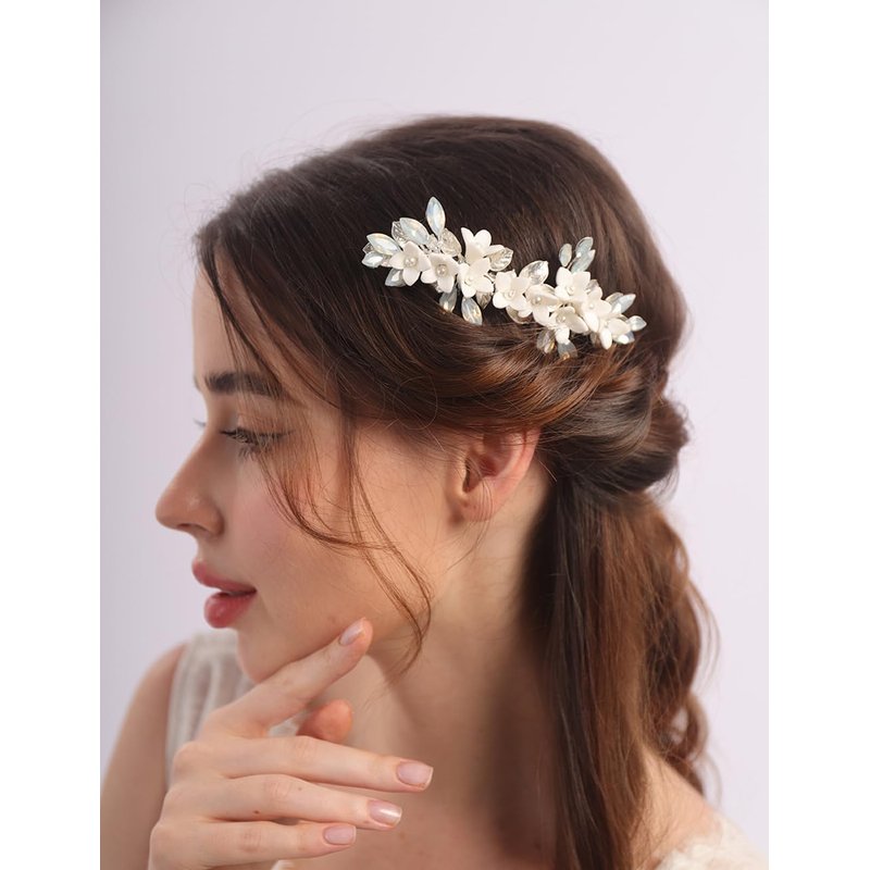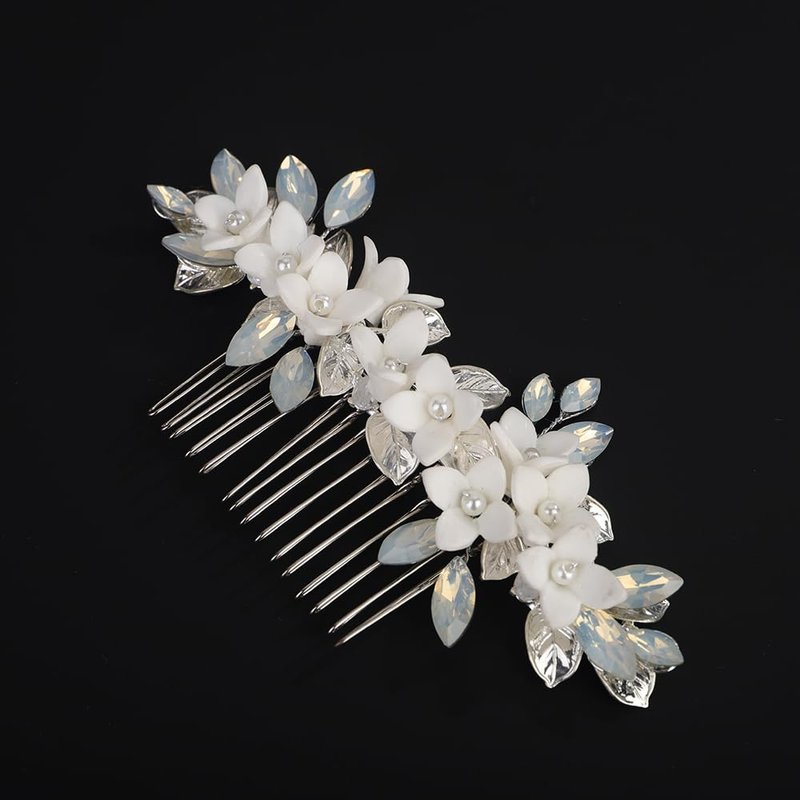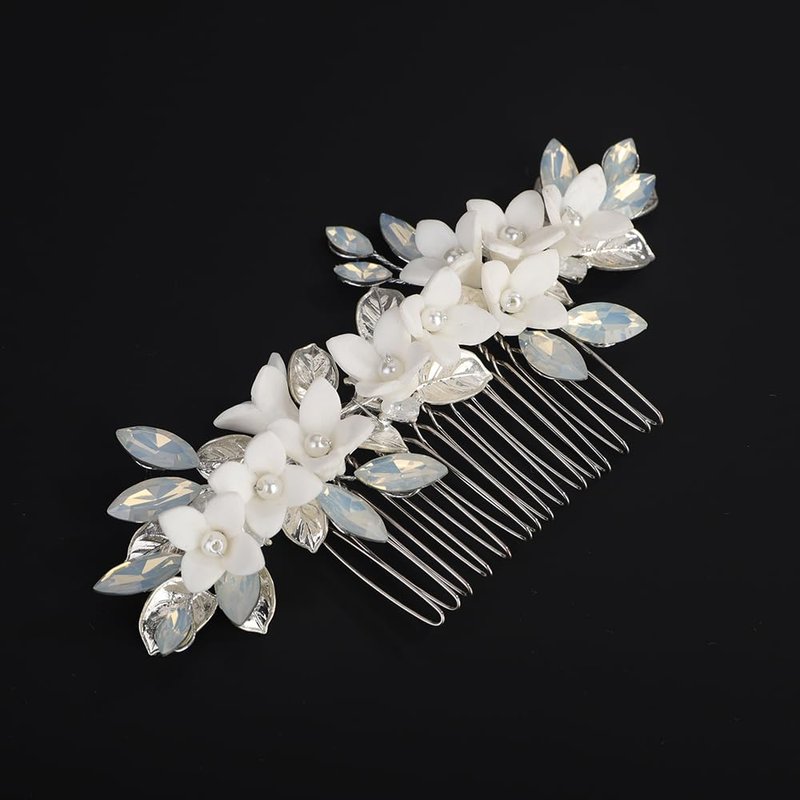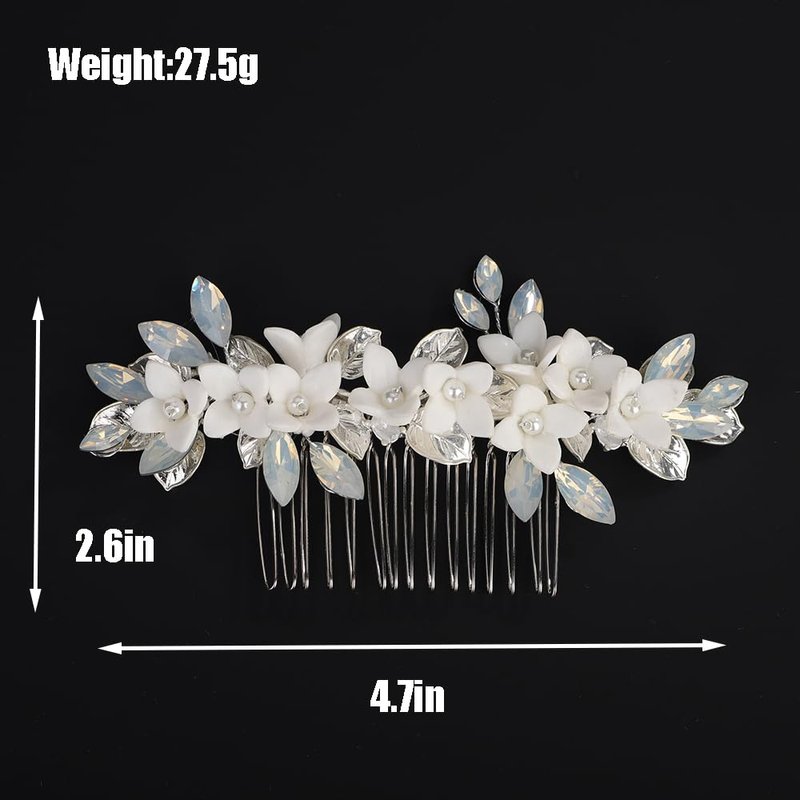 - Floral white flower crystal hair comb for women party prom wedding and evening,exquisite and unique design,will add more charm for your outfit.