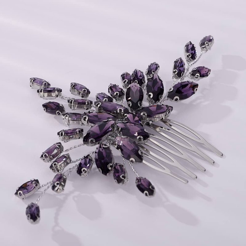Teyglen Women Dainty Simple Full Rhinestones Red Blue Black Bride Wedding Hair Comb Luxurious Hair Accessories Shiny Rhinestones Bridal Side Hair Combs for Women Bride Girls (Purple)