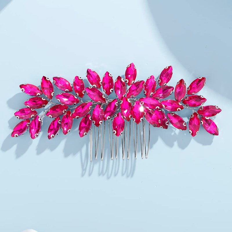 Teyglen Women's Dainty Rhinestone Hair Comb - Luxurious Shiny Bridal Side Comb for Brides and Girls (Rose Red)
