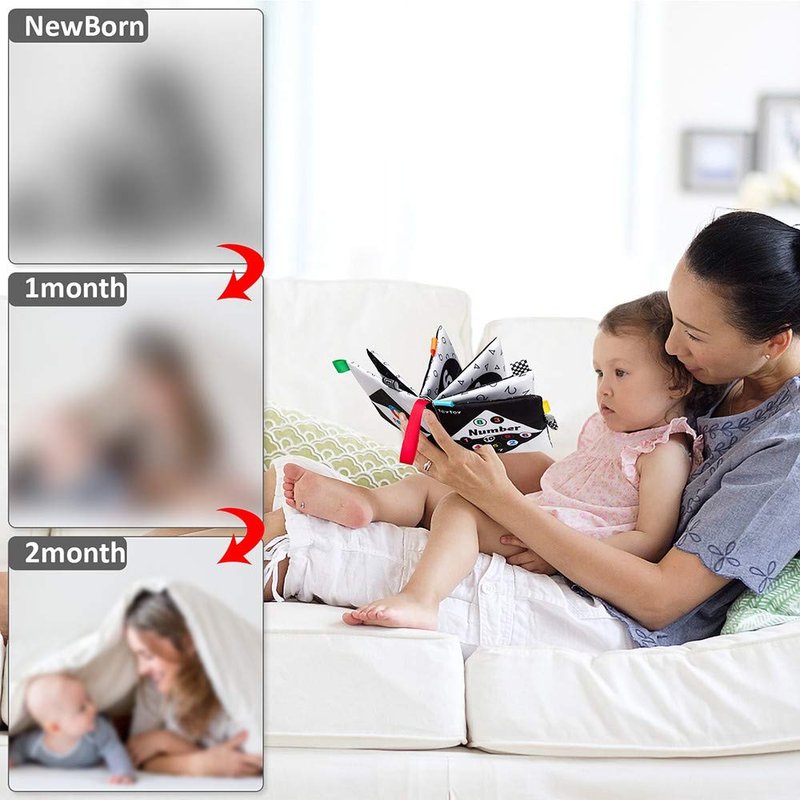 - [BABY GROWTH EDUCATIONAL TOY]: Black and white high contrast baby books can stimulate babies' brain development, good for babies' eyesight and cognitive development, baby cloth books can help your children to concentrate, develop hand-eye coordination, good motor skills and the best visual experience help them earlier to know this colorful world, to understand the fun of numbers. Is the best choice for early development toy!