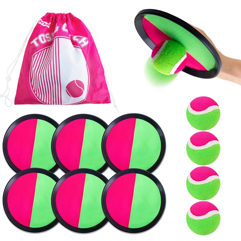 - [CLASSIC OUTDOOR GAMES]: This catching ball set comes with 6 rackets, 4 sticky balls, and a storage bag. Suitable for all age groups. You can play fun throwing and catching games in parks, beaches, swimming pools, yards, and other outdoor places. Both children and parents can play ball catching, which is the perfect outdoor game for families.