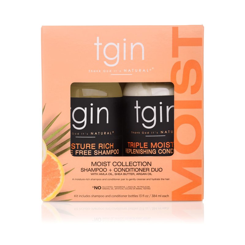 tgin Moisturizing Shampoo & Conditioner Duo for Curly, Coily and Wavy Hair, Sulfate Free, Moisturizes and Detangles Dry Hair, 13 oz (Set)