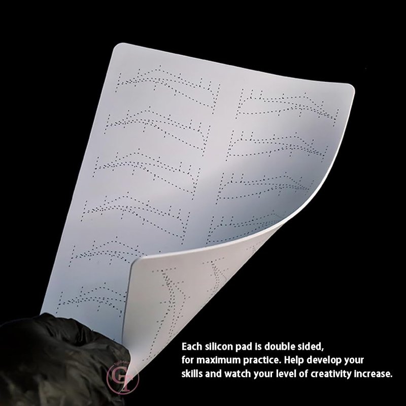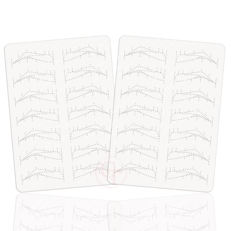 - Nano Brow Silicone Practice Skin: Empty brow shapes with thin tracer dots. Can be use to practice any brow technique.