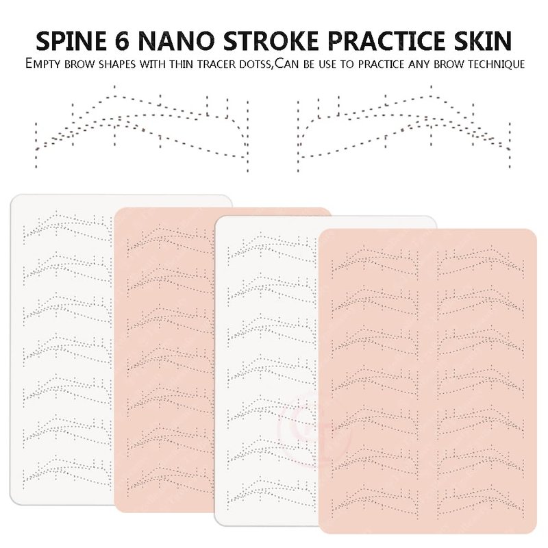 - Nano Brow Silicone Practice Skin: Empty brow shapes with thin tracer dots. Can be use to practice any brow technique.