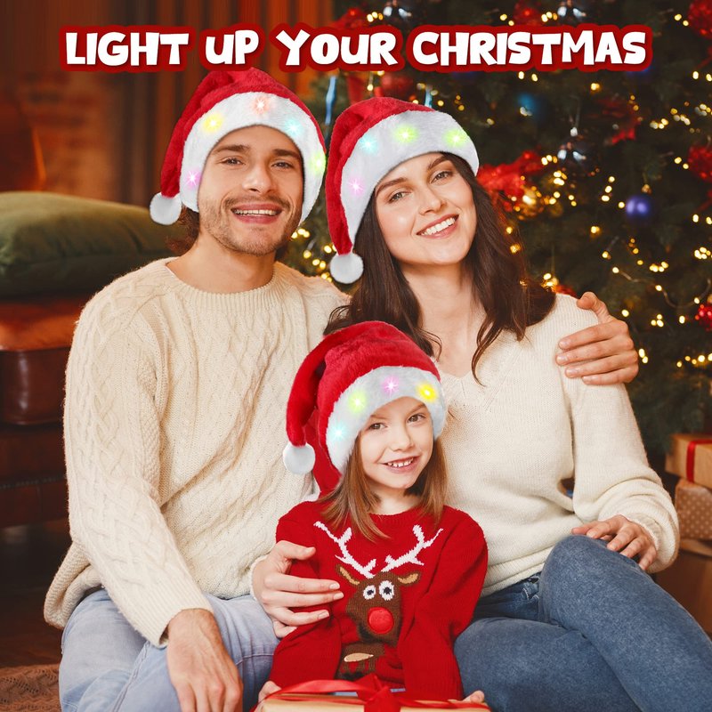 tgosomt Santa Hat, Light up Christmas Hat, Santa Hat with LED Lights, Flashing Santa Hat for Adults & kids Christmas Gifts