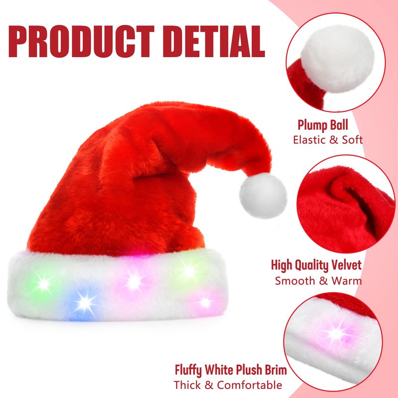 - 🎅🎅【Wide Use】The light up Christmas hat is suitable for Christmas parties, Christmas-themed activities, Christmas decorations, etc. Easily bring a strong festive atmosphere to your Christmas and leave you and your family with joyful holiday memories.