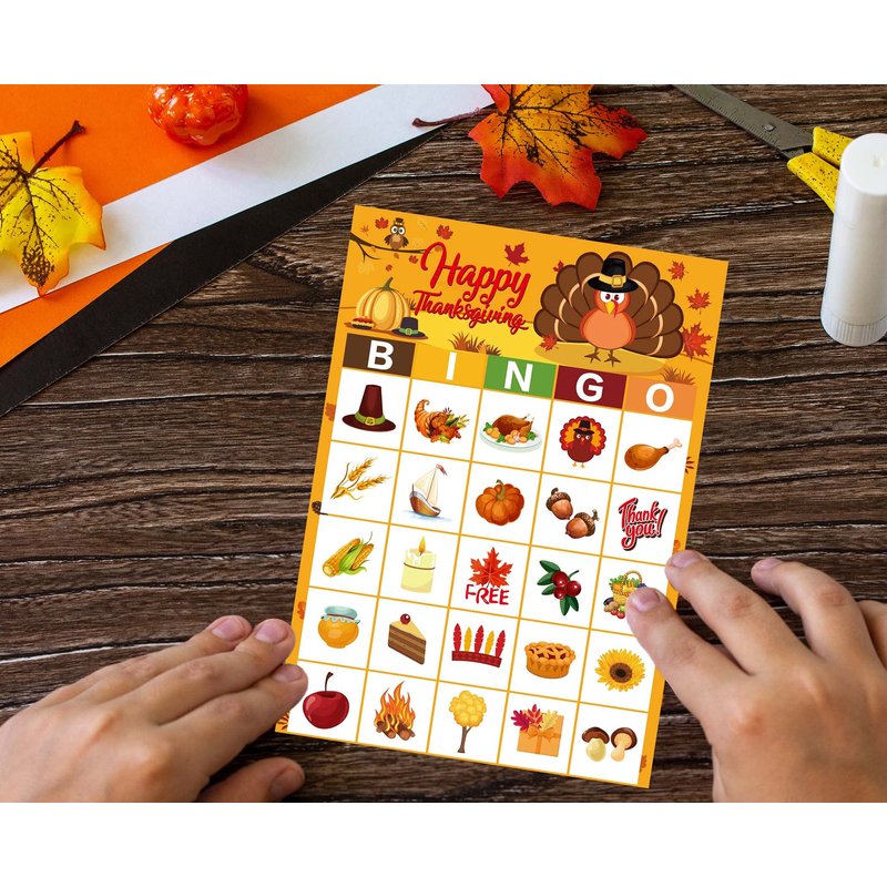 - [REUSABLE THANKSGIVING BINGO GAMES FOR FAMILY] Durable maeral,no easly desroyedThanksgvng bngo game are surdy and colorfulThanksgvng bngo cards could be able o keep and use mulple mes,easy o cu along doed lnes of chp shees and caller card shee