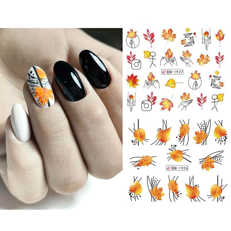 - Package: 12 Sheets Fall Nail Stickers Autumn Maple Leaves Water Transfer Decals,Different Styles Yellow Maple letter flowers designer for nail decoration Water Decals Sliders Manicure Craft Decoration.