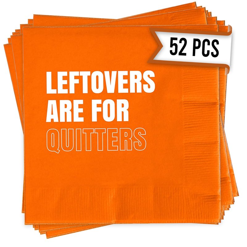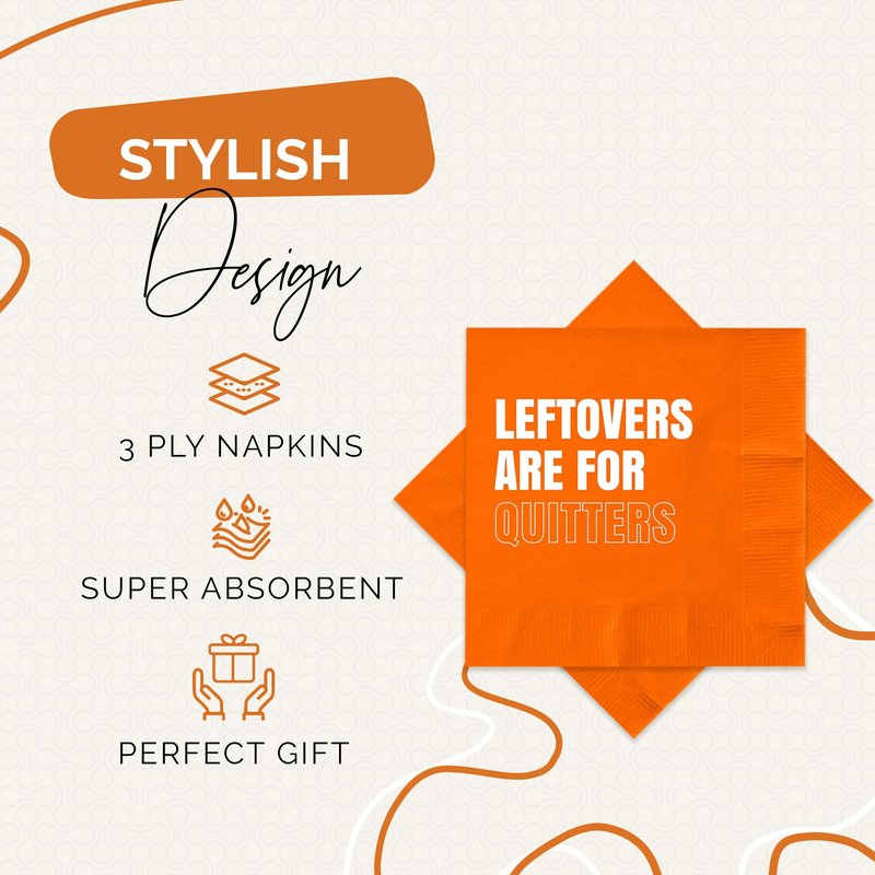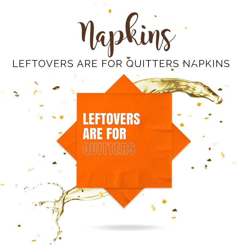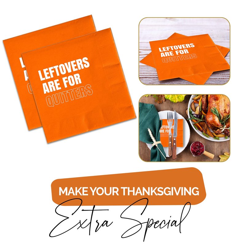 - ADD HUMOR TO YOUR THANKSGIVING TABLE – These Thanksgiving napkins feature the witty phrase “Leftovers Are For Quitters,” bringing laughter and personality to your celebration. Perfect for gatherings where food is celebrated with passion!