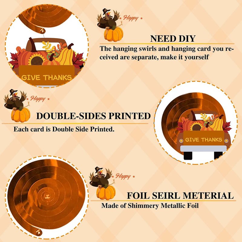 HIGH-QUALITY MATERAL: Thanksgiving banneris made of very strong Cardboard, light and durable, Thanksgiving hangingswirls are made of paper card and PVC plastic, durable and light weight,convenient to store, does not take up space and can be reused.