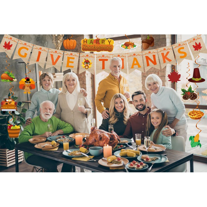 Thanksgiving Party Decorations,Pre-Assembled Thanksgiving Banner Set Including 6 Playmates 1 Banner Garland 21 Hanging Swirls for Home Office Classroom Fall Decor Thanksgiving Decoration