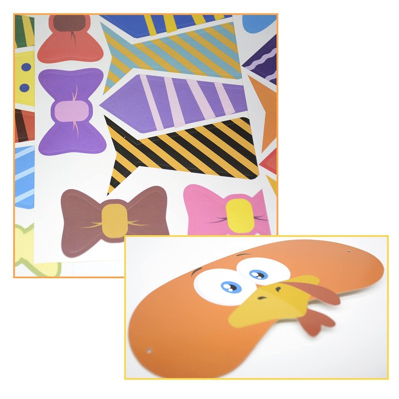 Cute turkey and owl eye mask, tie and bow stickers in a variety of colours and patterns to stimulate children's interest in playing.