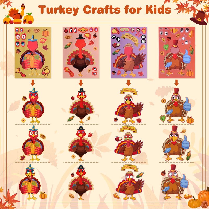• Funny Design Turkey Stickers: With Thanksgiving as the theme, this make a face stickers use the classic elements of turkey, vivid and interesting facial expressions and colorful color combinations, delicate and beautiful, full of thanksgiving, improve your child's imagination and exercise hands-on skills. Thanksgiving stickers for kids classroom make a turkey sticker sheets thanksgiving crafts for kids ages 4-8 thanksgiving craft for kids thanksgiving crafts for kids 8 - 12